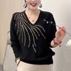 Autumn Winter Women Sweaters Pullovers Solid V-Neck Diamonds Temperament Fashion Casual Long Sleeve Bottoming Shirt Knit Tops