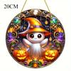 Halloween Acrylic Flat 2D Decoration with Cartoons, Witch Hats and Colorful Flower Pendants - Gifts for Family , for Homes, Gardens and Courtyards