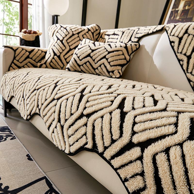 Simple and Modern Shu Cotton Lint Special-shaped Sofa Cushion 2025 Non-slip Cover One Piece Leather Sofa Plush Seat Cushion