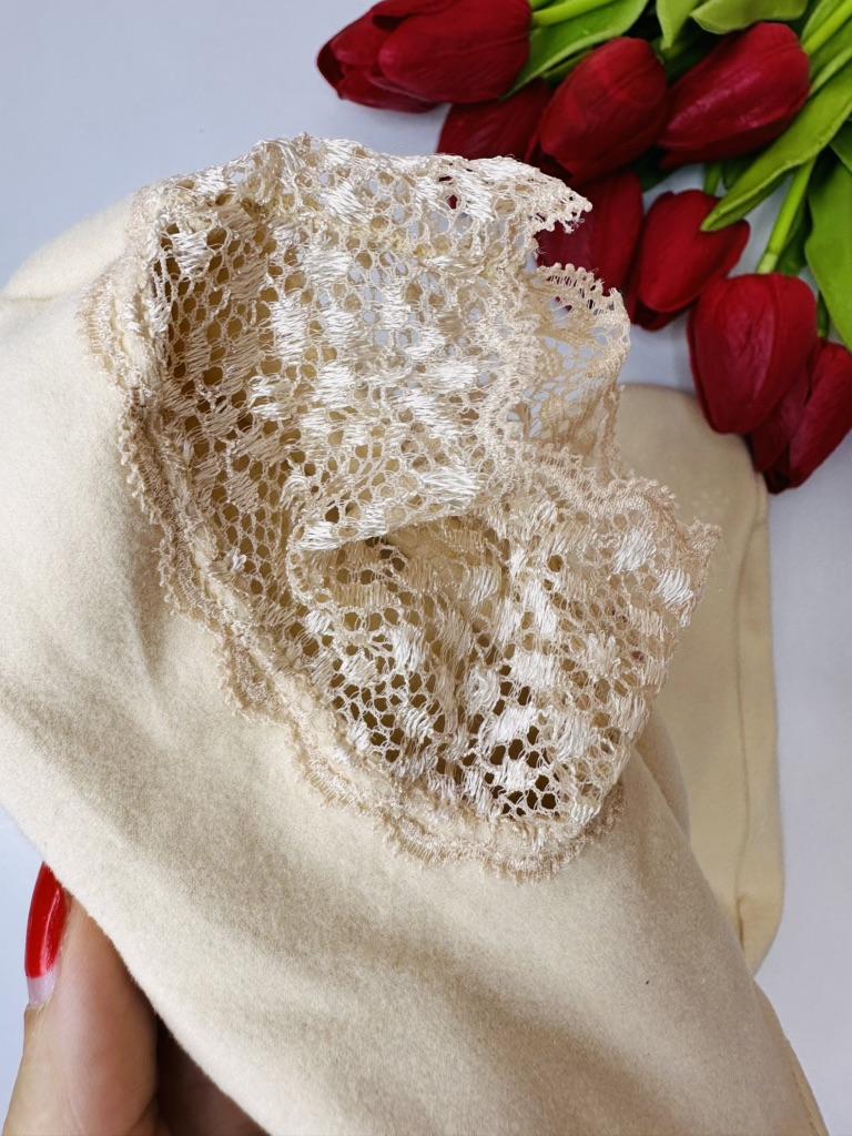 Very short lace with narrow elastic bands, it pulls on the leg with difficulty
