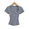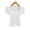 Square Collar High Stretch Summer Crop Tops Women Short Sleeve Tops Sexy Pullover Bottoming Blouses Slim T-shirt