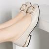 Leather Single Shoes Women's Low Heels Spring and Autumn New Round Head Thick Heel Leather Shoes Shallow Mouth Flat Shoes Women