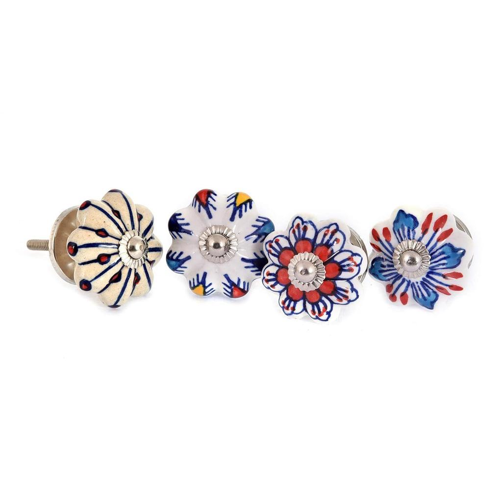 Door Knobs for Drawers - Multicolor Blue Pottery Ceramic Pull Handle for Kitchen Cabinets and Dressers Home Interior Decor - Pack of 4