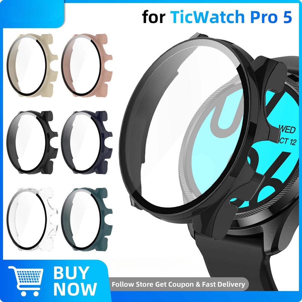 Glass+Hard Case for TicWatch Pro 5 Screen Protector Tempered Glass All-around Bumper Protection Cover Shell Accessories