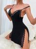 European-American Sexy Spaghetti Strap Slit Nightgown - Women's Flirtatious Home Lingerie