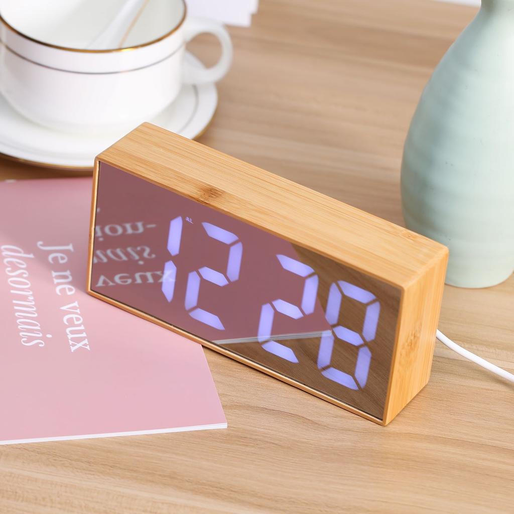 LED Electronic Clock Simple and Fashionable Alarm Clock Bedside Mute Clock Large Font Solid Wood Clock