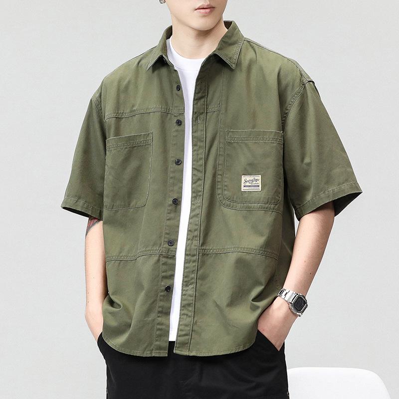 Retro Workwear Short-sleeved Shirt Men's Trendy Casual American Summer Half-sleeved Shirt