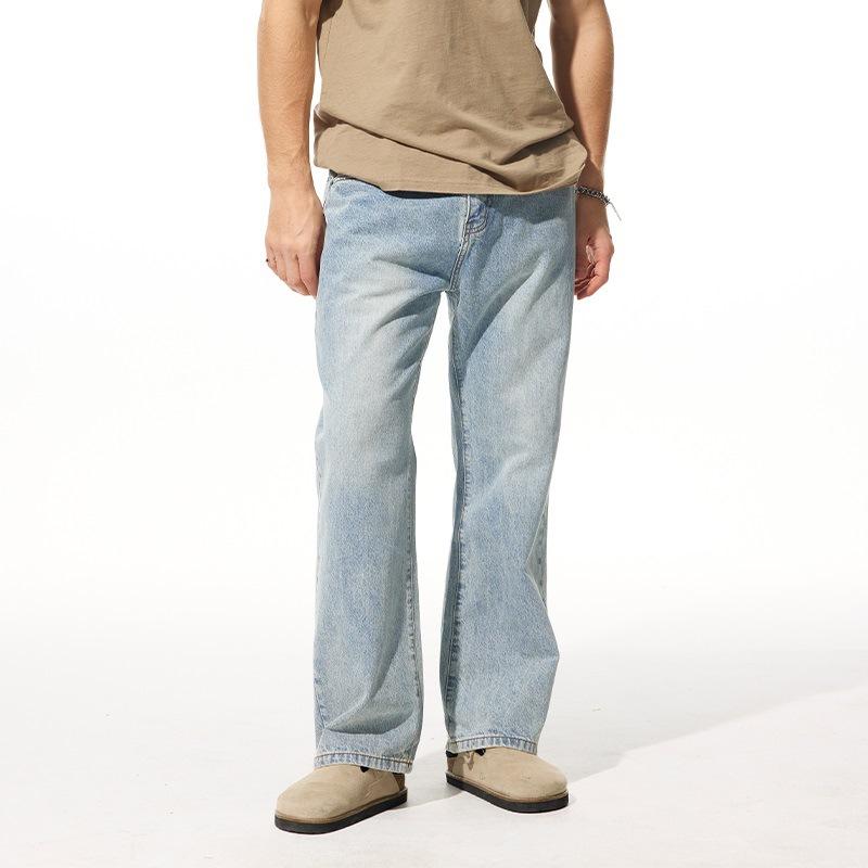 New Spring and Summer Style Men's Denim Loose High Street Straight Micro-flare Jeans Long