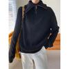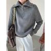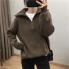 New Autumn and Winter Korean-style Laid-back Style Zipper Large Lapel Solid Color Sweater Women's Loose Pullover Knitted Sweater Coat