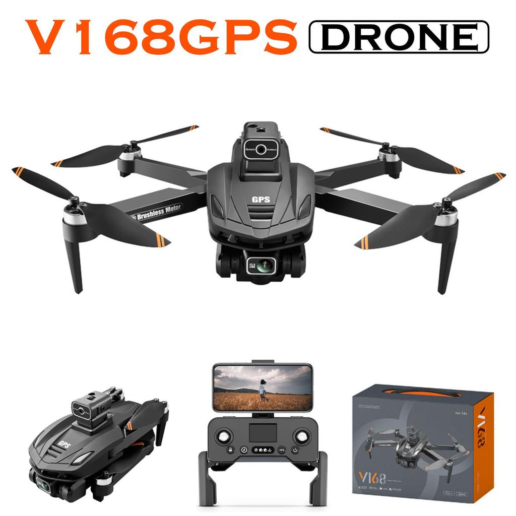 V168 Long-Endurance 8K HD Drone with GPS, One-Key Return, Brushless Motors, Four-Axis Remote Control UAV.