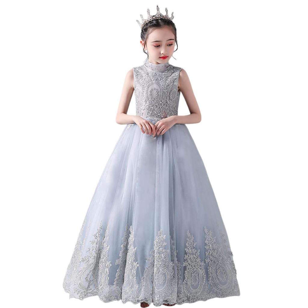 Formal Long Piano One Long [VIISEN] Children's Dress, Kids, Dress, Wedding, Concert, Party, Dress, Junior, Recital, Dress, Piece, 100-160 (1/Gray 110)