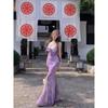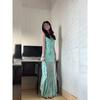 Mesh Niche Style Exquisite Printing Design Fishtail Suspender Dress Women's Summer New Large Size