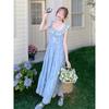 Summer Seaside Vacation Long Dress Casual Printing Small Flying Sleeves Suspender Dress Women's Sweet and Thin Skirt