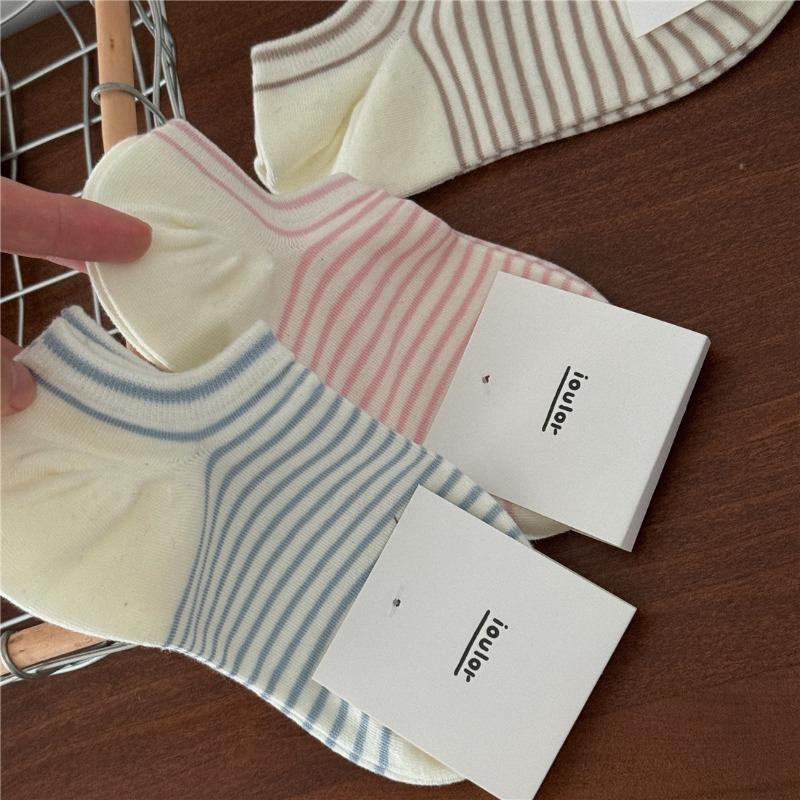 Female Summer Stripe Simple Socks Do Not Fall with Boneless Sweat Absorption Breathable Small Fresh Socks