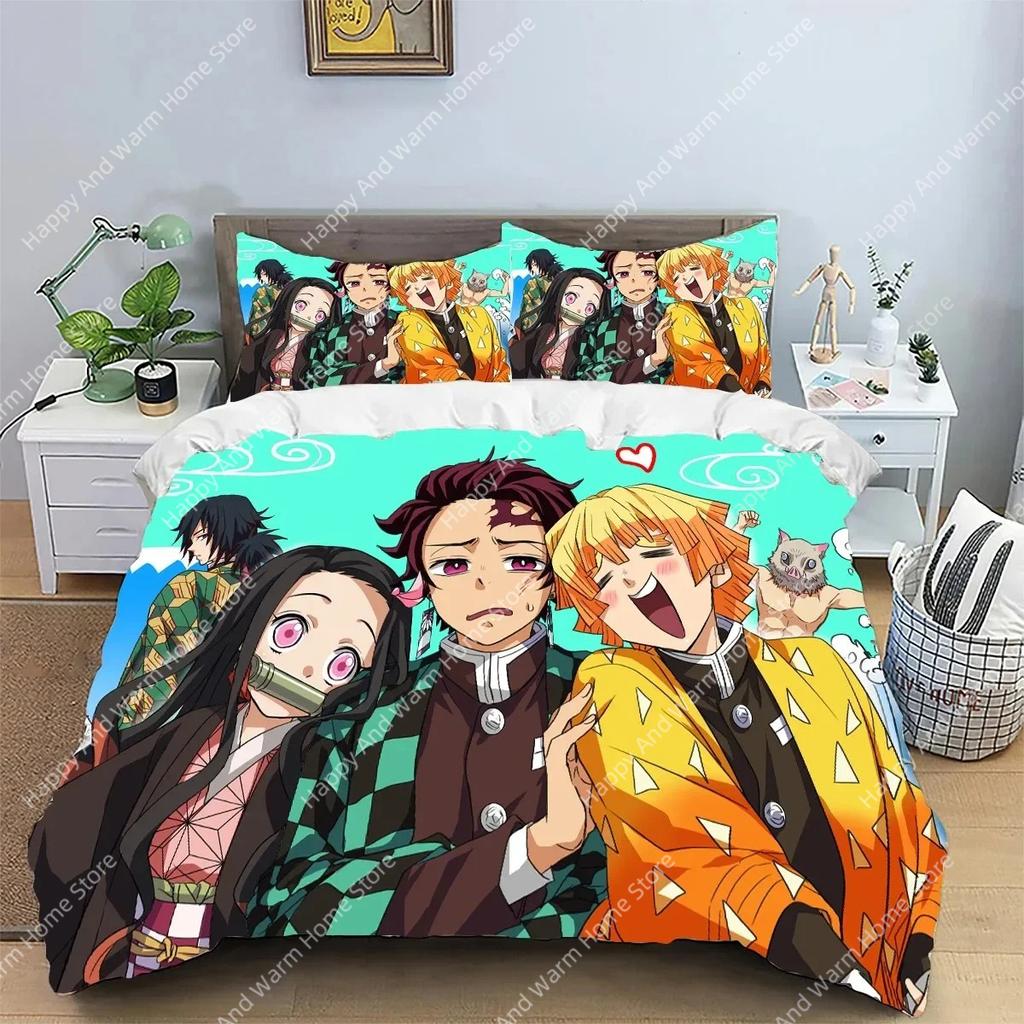 Kamado Nezuko Demon Slayer Bedding Set Duvet Cover Set Bedspread Pillowcase King Queen Full Single Size Bed Linen Boys Teen Gift