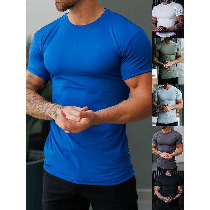Large Size Matte Plain Men'S Summer Sports Fitness Casual Stretch Round Neck Short Sleeve T-Shirt For Men