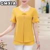 GMXIA Women's Fashion Casual Leisure Solid Color Print Short Sleeve O Neck Blouses & Shirts