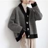 Temperament V-neck Striped Knitted Cardigan Top Contrasting Colors Autumn and Winter Loose Lazy Style High-end French Sweater Women