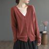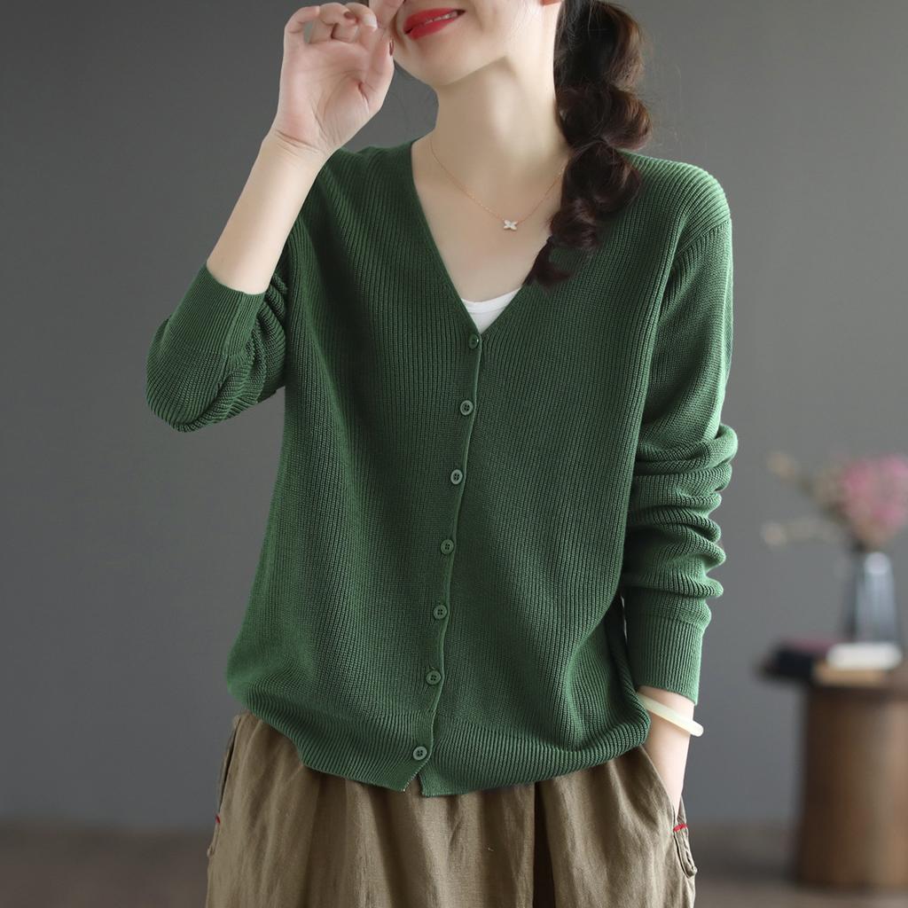 Loose Fashion Foreign Style Retro Long-sleeved Cardigan Women's Literary V-neck Solid Color Cotton Thread Knitted Jacket Women's Autumn and Winter