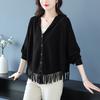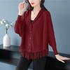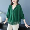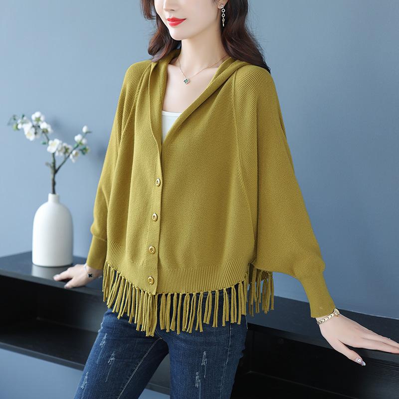 Lazy Wind Fringed Knitted Sweater Jacket Women's Autumn Solid Color Casual Large Size Bat Hooded Sweater Loose Cardigan Women