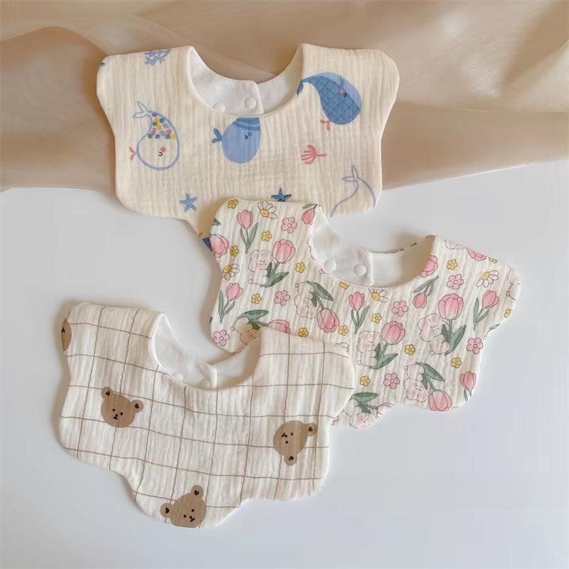 Cotton Muslin Baby Drool Bibs Soft Breathable Bandana Newborn Neck Bib Soft Cartoon Print Toddler Feeding Bibs for Boy Girl