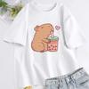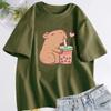 Cute Capybara Loves Bubble Tea T Shirt for Women Cotton Short Sleeve Cartoon Graphic T Shirts Summer Short Sleeve Tee Clothes