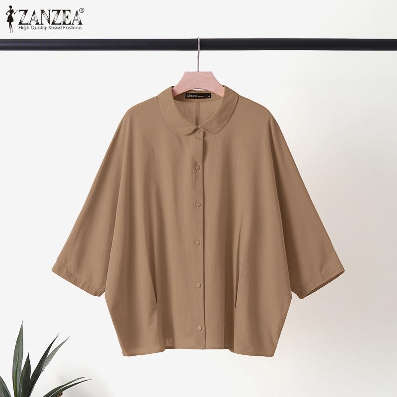 ZANZEA Women Summer Doll Collar Loose Casual 3/4 Sleeve Blouse