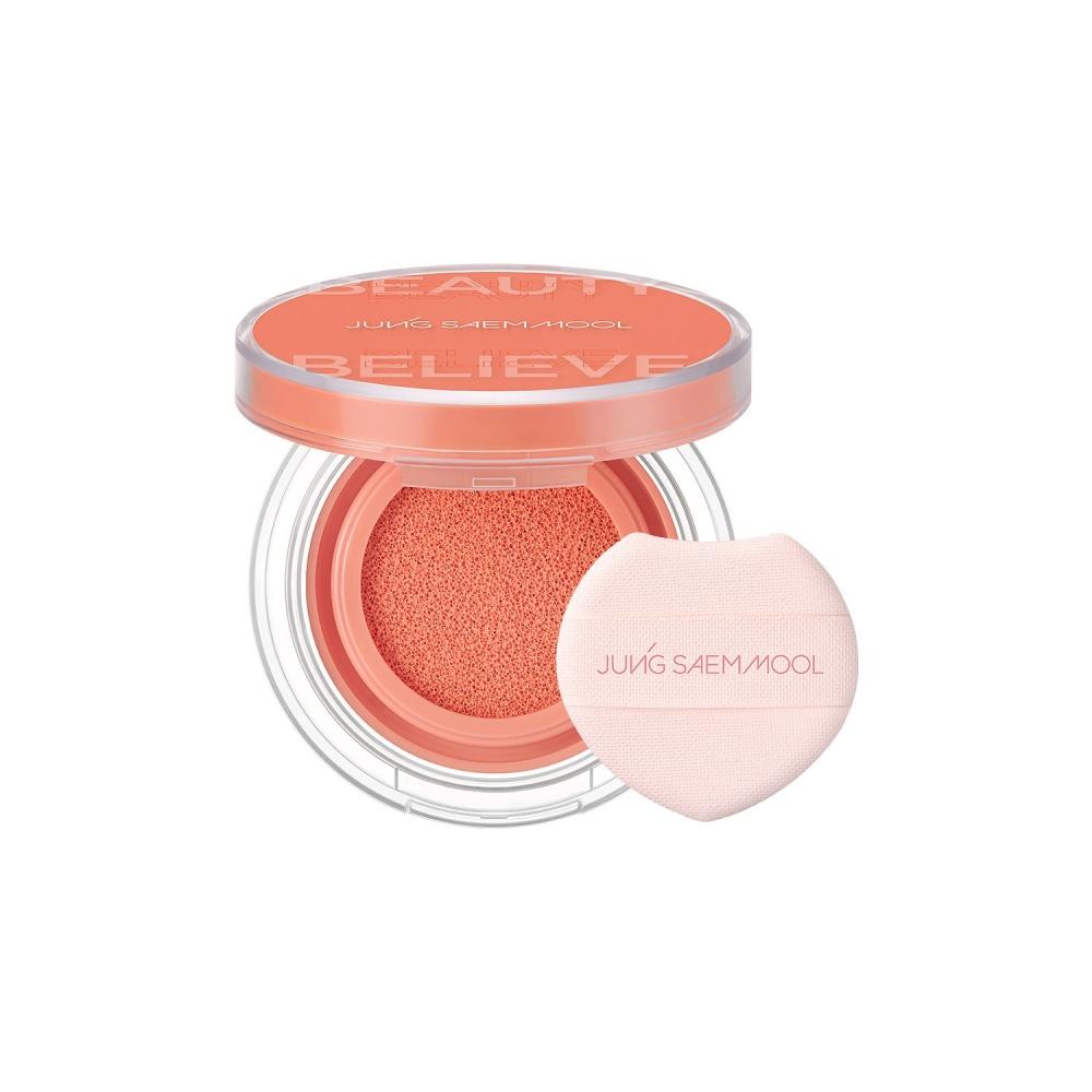 The JUNGSAEMMOOL Artist Cushion Blush #Dewy Coral is a vibrant blush that encapsulates the essence of natural light. With 77% moisture essence, it deeply hydrates the skin, allowing for a flawless and lively makeup finish. Its creamy yet lightweight texture adheres effortlessly to the skin, delivering a natural color without caking.