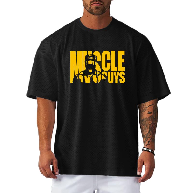 Muscleguys Oversized Loose Running T-Shirts Men Muscleguys Gym Fitness Sports Half Sleeve T Shirt Summer Mesh Quick Dry Breathable Clothing