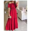 LYRIA Solid Boho Dress Women Fashion Elegant Beach Party Dress Casual Slash Neck Office Maxi Dresses For Woman Robe Femme