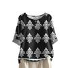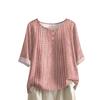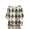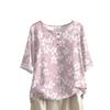 Women's Fashionable And Casual Shirt Half-sleeve Round Neck Print Cotton And Linen Blouse Top