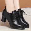 New Winter Women Boots Thick Heel Flat Shoes Anti-slip Velvet Laces for Comfort Ankle Autumn Fashion Leather Boots