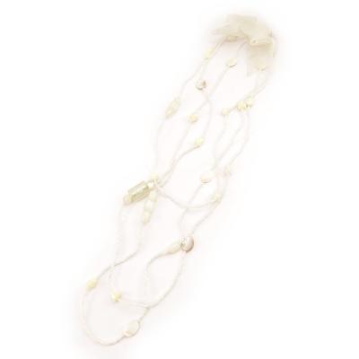 [R5216] - Designer Long Necklace 'Sissi' Ecru - 60 Cm + Adjustable Satin Cord