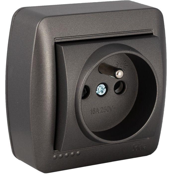 Prise Française 2P+T 16A 250V En Saillie - Noir Graphite - Solera
