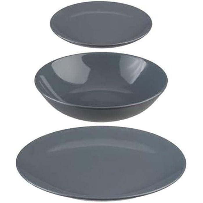 Service De Table - Secret De Gourmet - 18 Pièces - Gris - Porcelaine - Compatible Lave-vaisselle