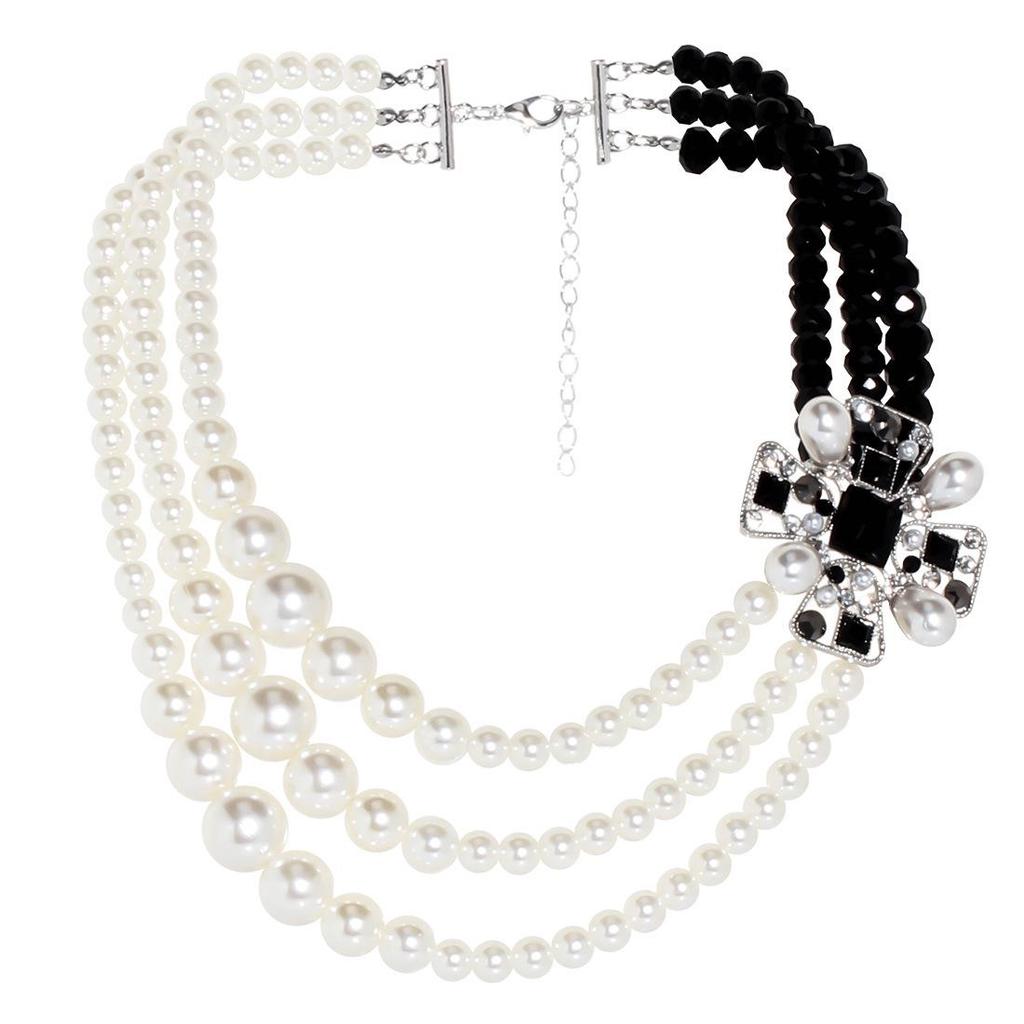 Retro Rhinestone Geometric Pearl Layered Necklace NK23600