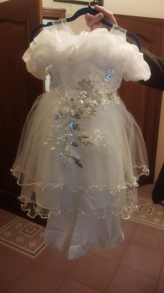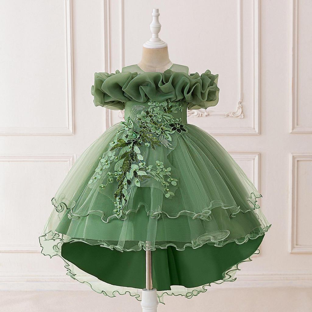 This enchanting dress is designed to make any girl feel like royalty. Crafted from a soft cotton blend, it combines comfort with elegance. The dress features a dazzling sequin bodice that catches the light beautifully, while the puffy tulle skirt flows into a graceful train, perfect for weddings and evening performances. With its exquisite design and luxurious details, this dress is ideal for making lasting memories on special occasions.