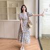 Bubble Sleeve Floral Dress Women's Summer New Fungus Edge Loose Small Long A-shaped Dress