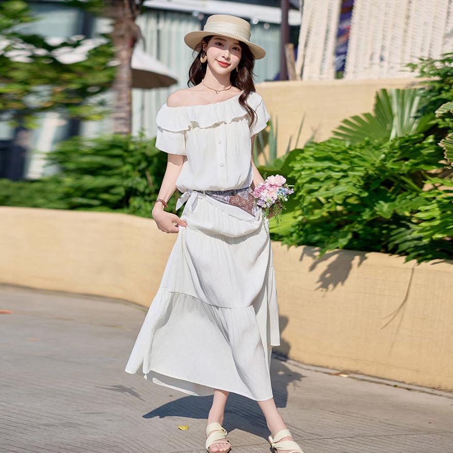 Summer Beautiful Suit Women's New Relaxed Ruffle Edge One-word Shoulder Top Skirt Two-piece Set