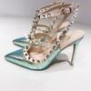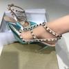 2025 New 10cm Light Blue Snake Pattern One-word Buckle Willow Nails High Heels Pointed Thin Heel Sexy Strap Bag Head Back Empty