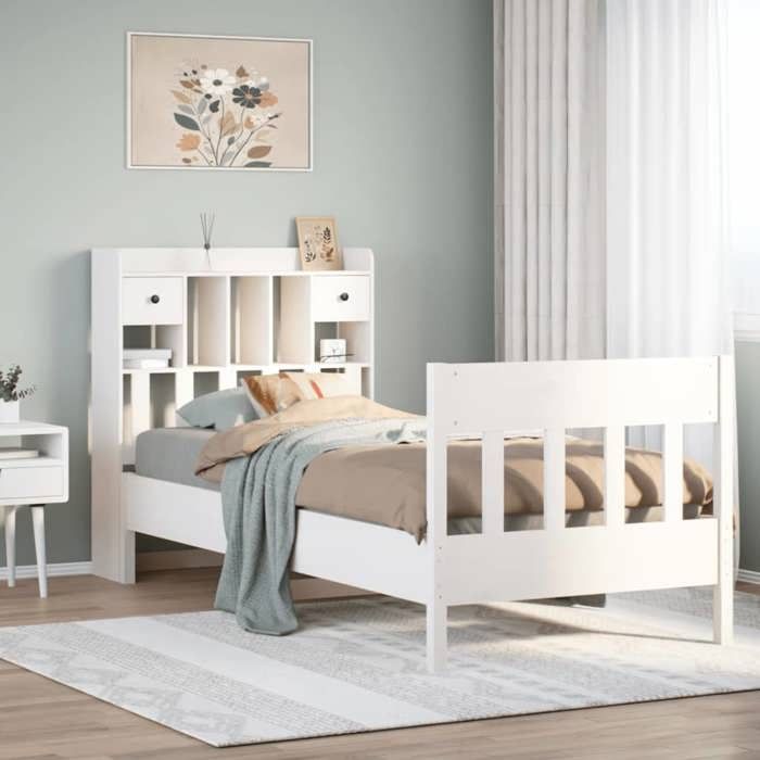 VidaXL Bed Frames Without Mattress White 75x190 Cm Solid Pine Wood, Bedroom Furniture, Slatted Base, Wooden Bed, Bed, 3323285