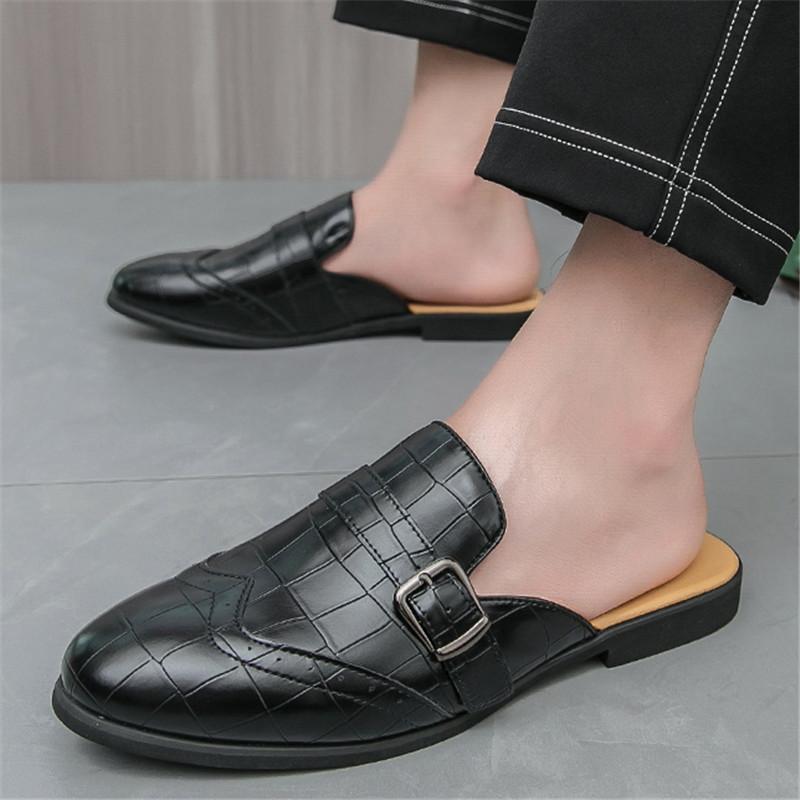 Luxury New Designer Men's Crocodile Pattern Patent Leather Half Shoes For Men Mules Sandals Casual Shoes Slides Loafers Slippers