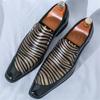 New Gentleman Pointed Rock Punk Stripe Pattern Loafers Shoes For Men Wedding Dress Prom Groom Homecoming Zapatos Hombre