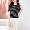 Temperament Striped Silk T-shirt Women's Short-sleeved Summer Dress Fashion Mulberry Silk Thin Top