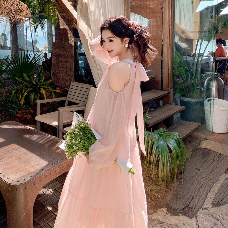 Seaside Vacation Dress Women's Summer New Sweet Gentle Wind Temperament Beautiful Off-the-shoulder Beach Dress