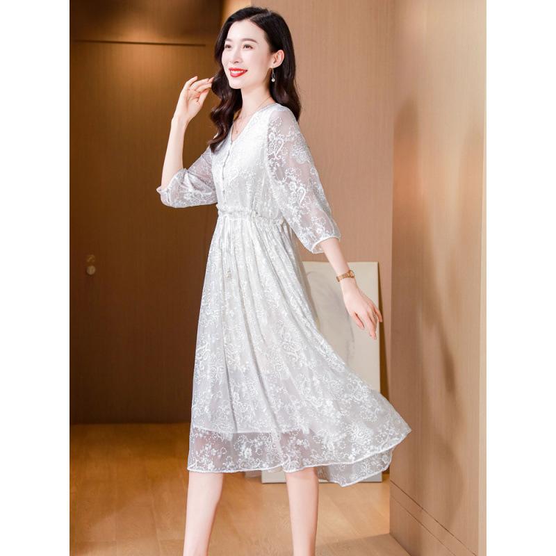 Summer New V-neck Silk Dress Embroidered Intellectual Fashion Mulberry Silk Dress Double Skirt