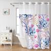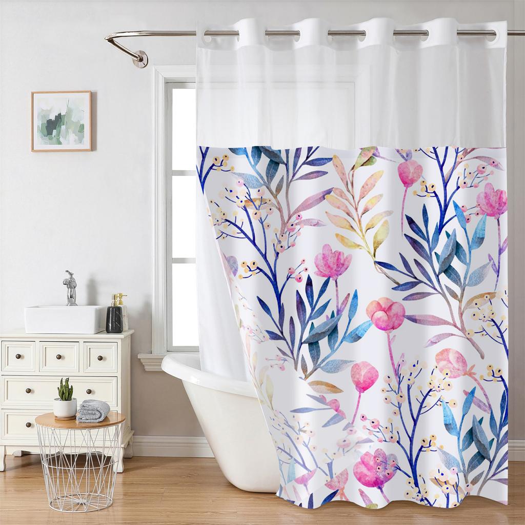 No Hook Floral Pattern Shower Curtain With Snap-in Fabric Liner, Sheer Top Window, Waterproof Double Layer Bathtub Curtain