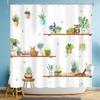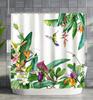 Hummingbird Floral Shower Curtain Watercolor Flower Plant Tropical Green Leaves Bird Butterfly Bathroom Decor Fabric with Hooks