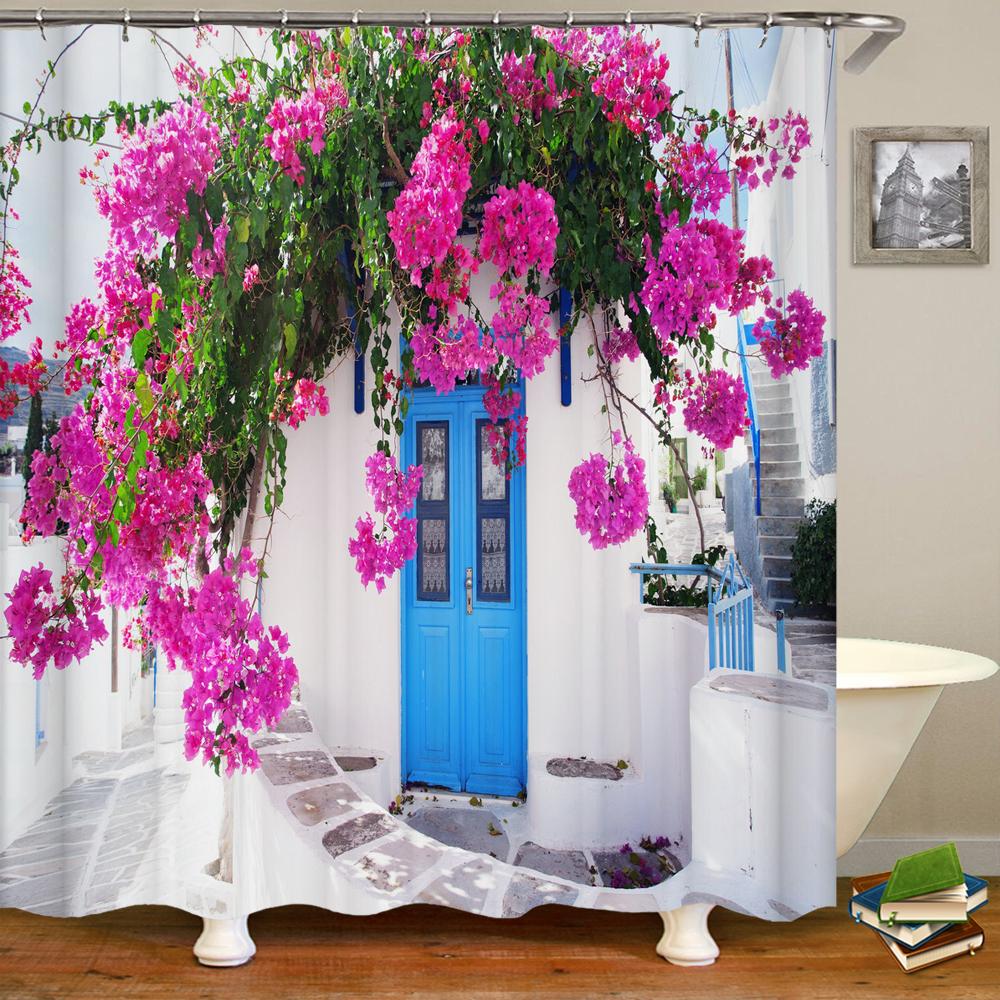 Rural Idyllic Flowers European Garden Shower Curtain Bathroom Waterproof 3d Printed Bath Curtains With 12 Hooks Polyester Cloth