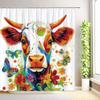 Cute Highland Cow Shower Curtain Funny Animals Rustic Farmhouse Cattle Butterfly Pink Flower Plants Cowboy Boots Bathroom Decor